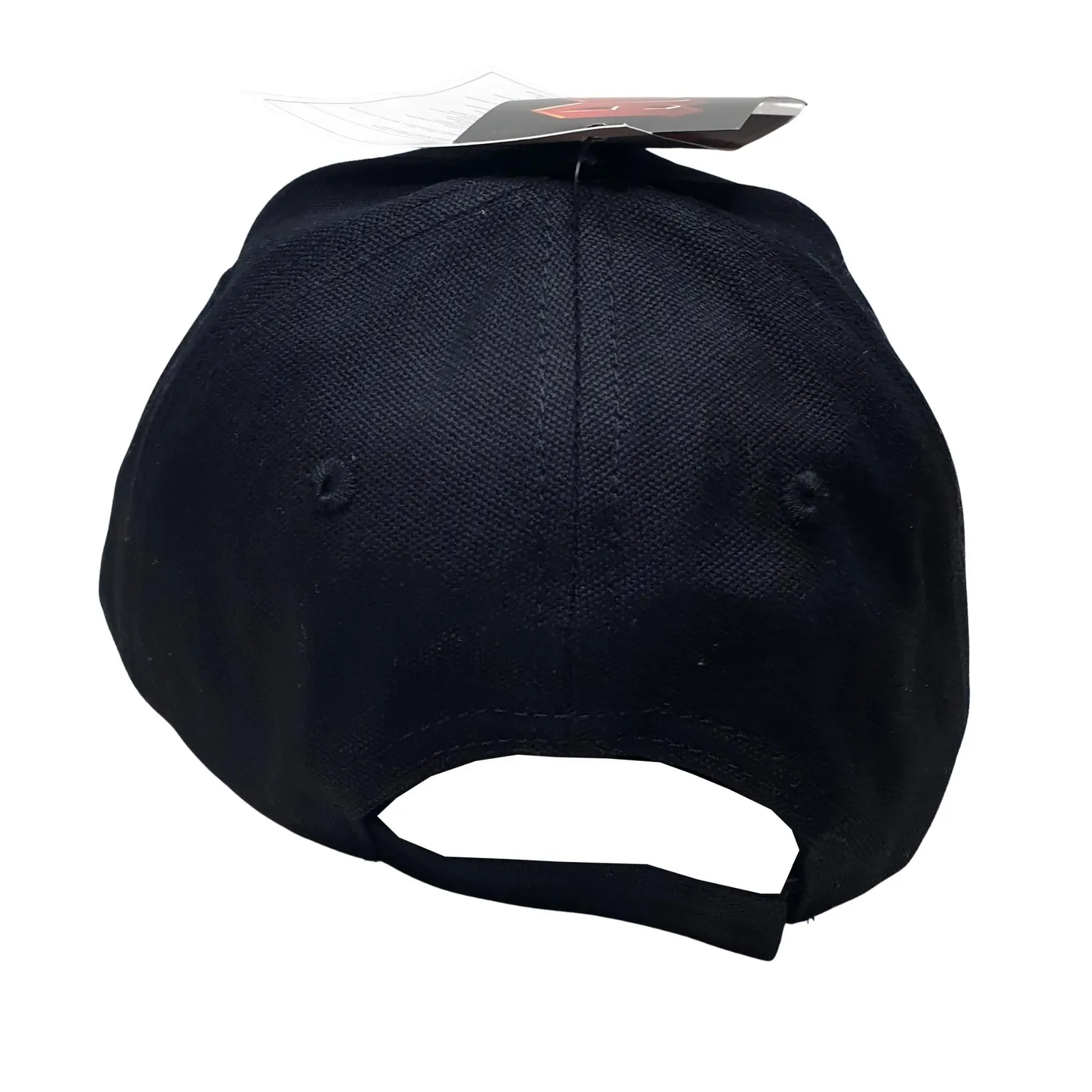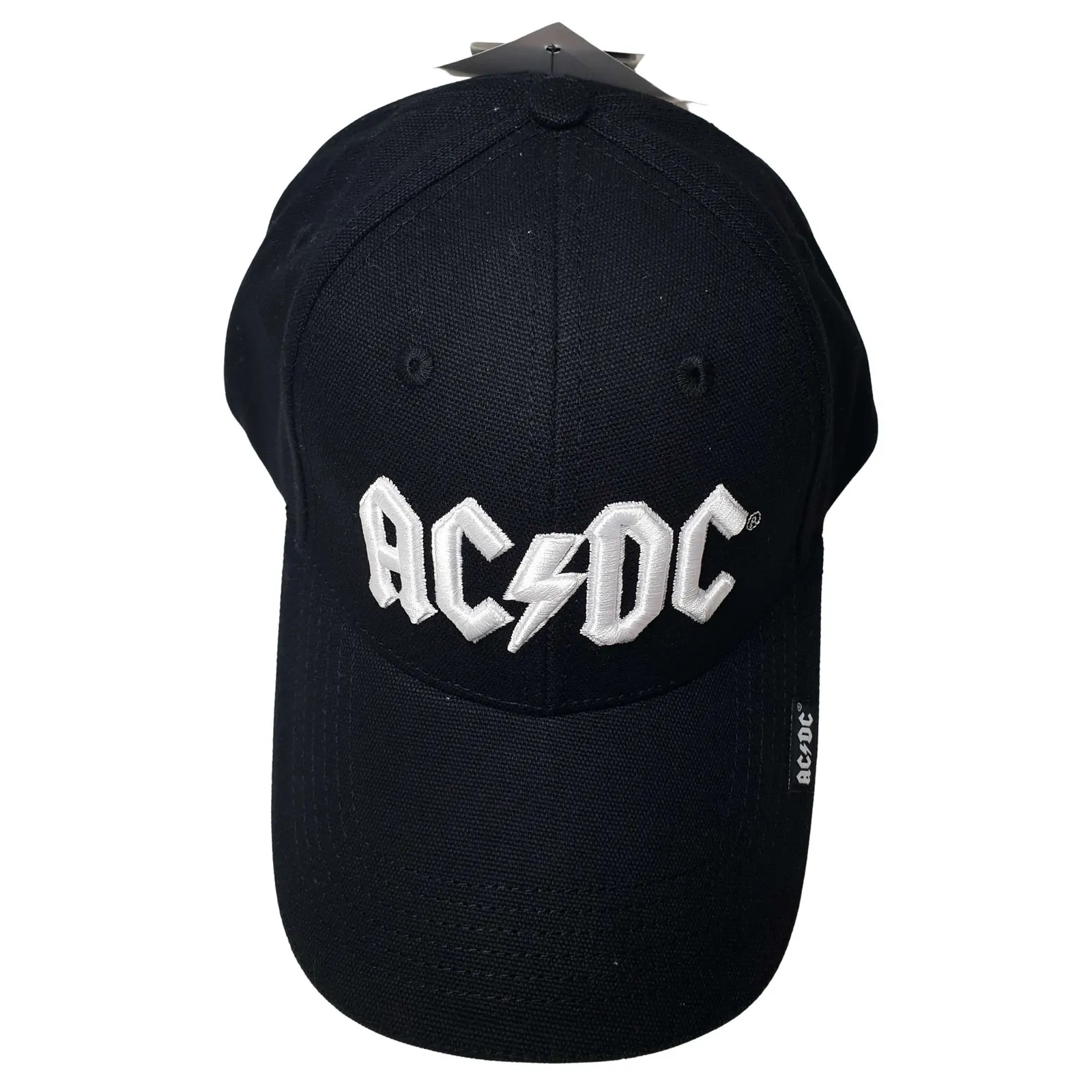 Official AC/DC white logo baseball cap. Officially licensed merchandise from legendary Australian rock band AC/DC. Features the iconic AC/DC logo embroidered in white on the front. Made from durable 100% cotton with an adjustable velcro closure for a comfortable fit.