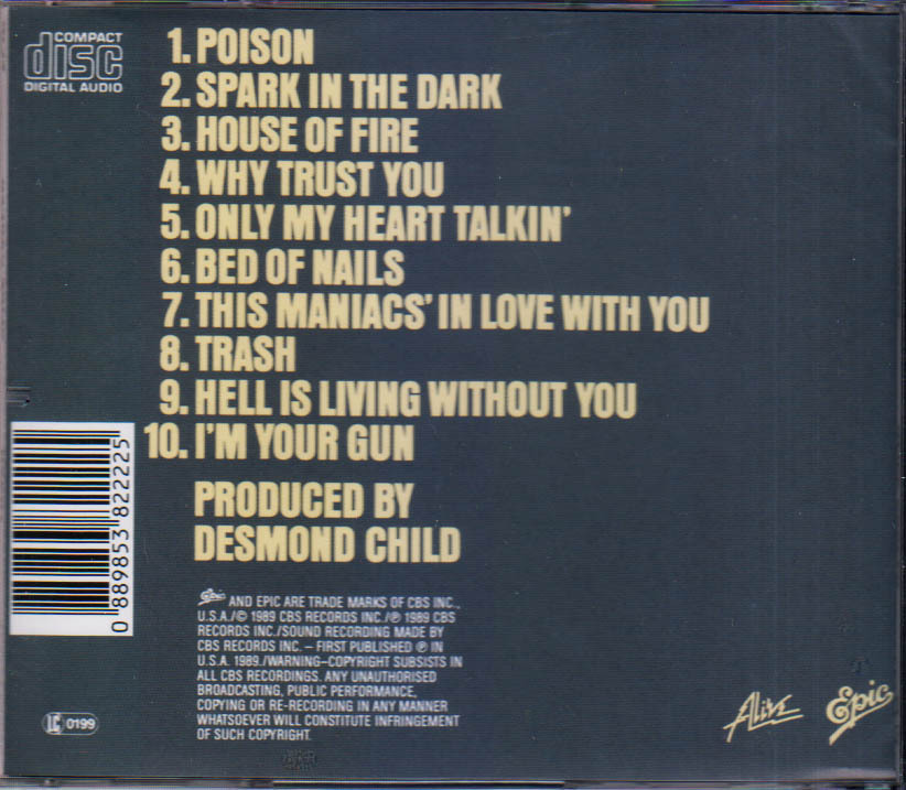 Trash is the eleventh studio album by American rock musician Alice Cooper, released in 1989. The album features the single "Poison", Cooper's first top ten hit since his single "You and Me" in 1977 and marked a great success in Cooper's musical career, reaching the Top 20 of various album charts and selling more than two million copies.