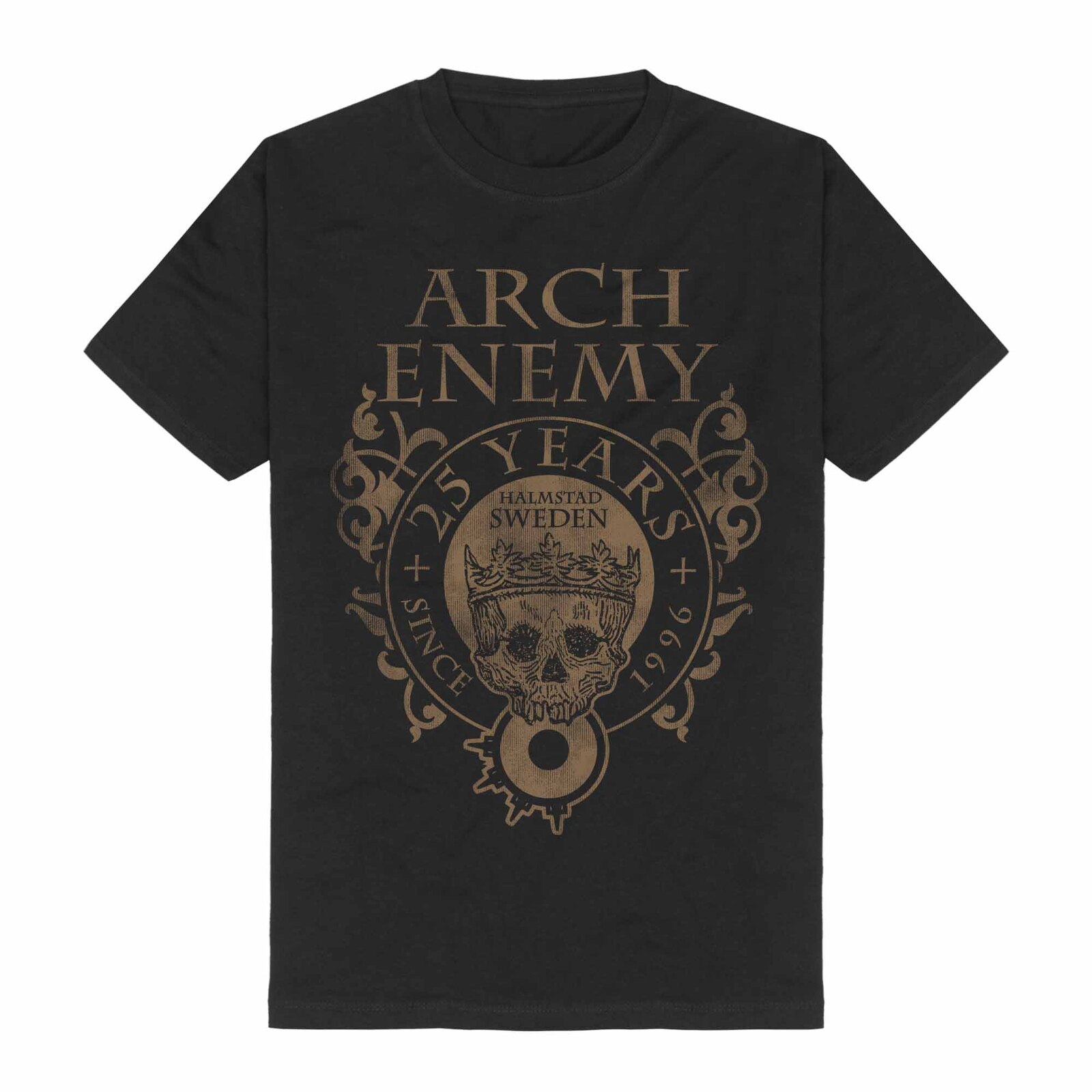 Official Arch Enemy t-shirt featuring the exclusive 25 Years Crest design, created to celebrate twenty-five years of one of the most influential bands in melodic death metal history.