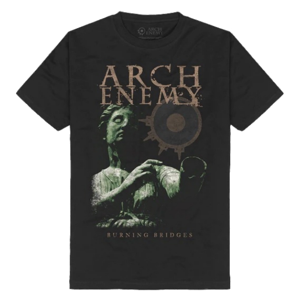 Official Arch Enemy t-shirt featuring the iconic artwork from their third studio album Burning Bridges, one of the most highly regarded releases of the band’s early era and a cornerstone of Swedish melodic death metal.