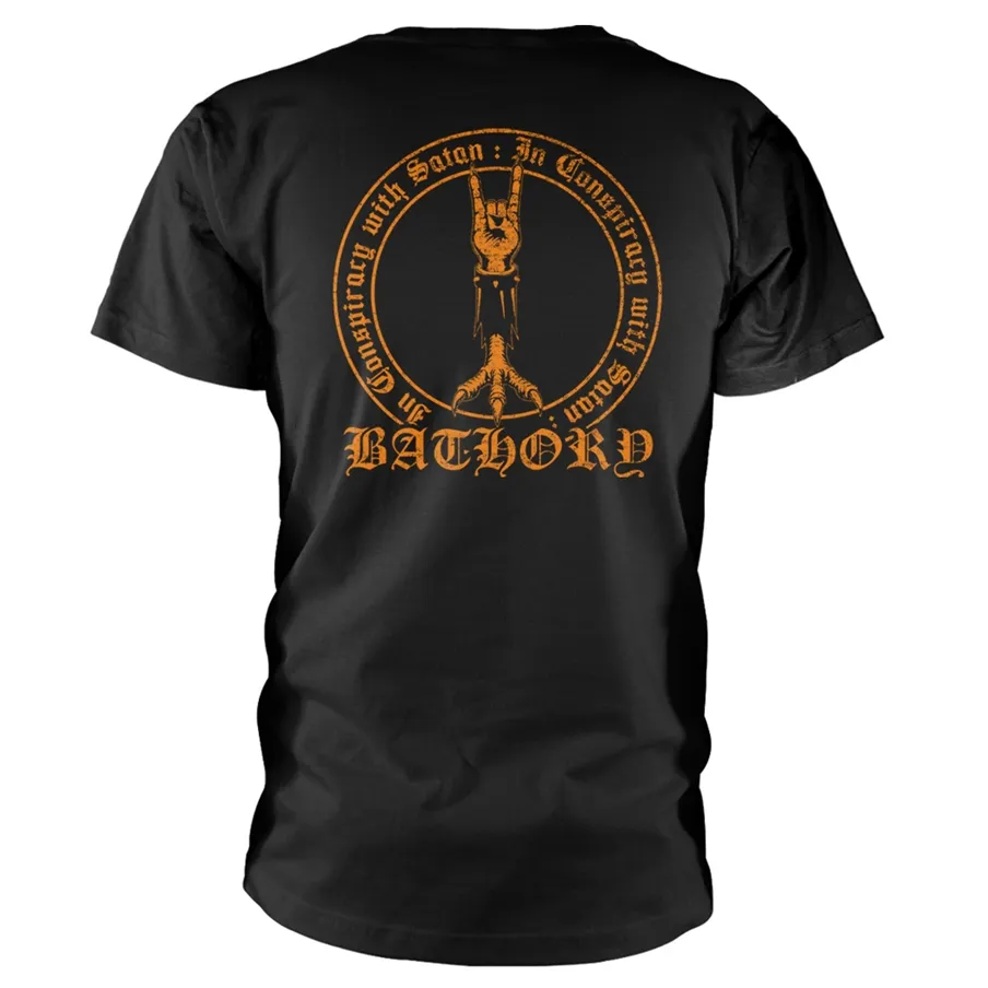 The Bathory In Conspiracy With Satan Shirt is an essential piece for fans of the pioneering Swedish extreme metal band Bathory. Inspired by the band’s early era, this design reflects the raw aggression and dark atmosphere that helped shape the foundation of black metal and influenced countless extreme acts worldwide.