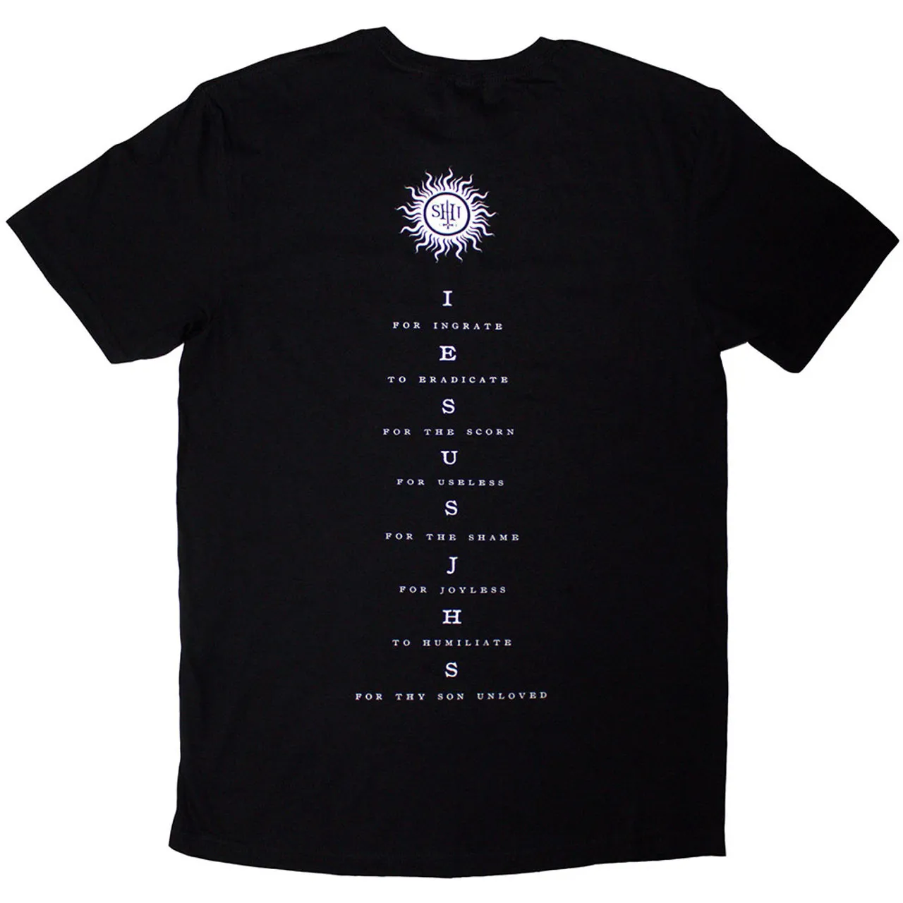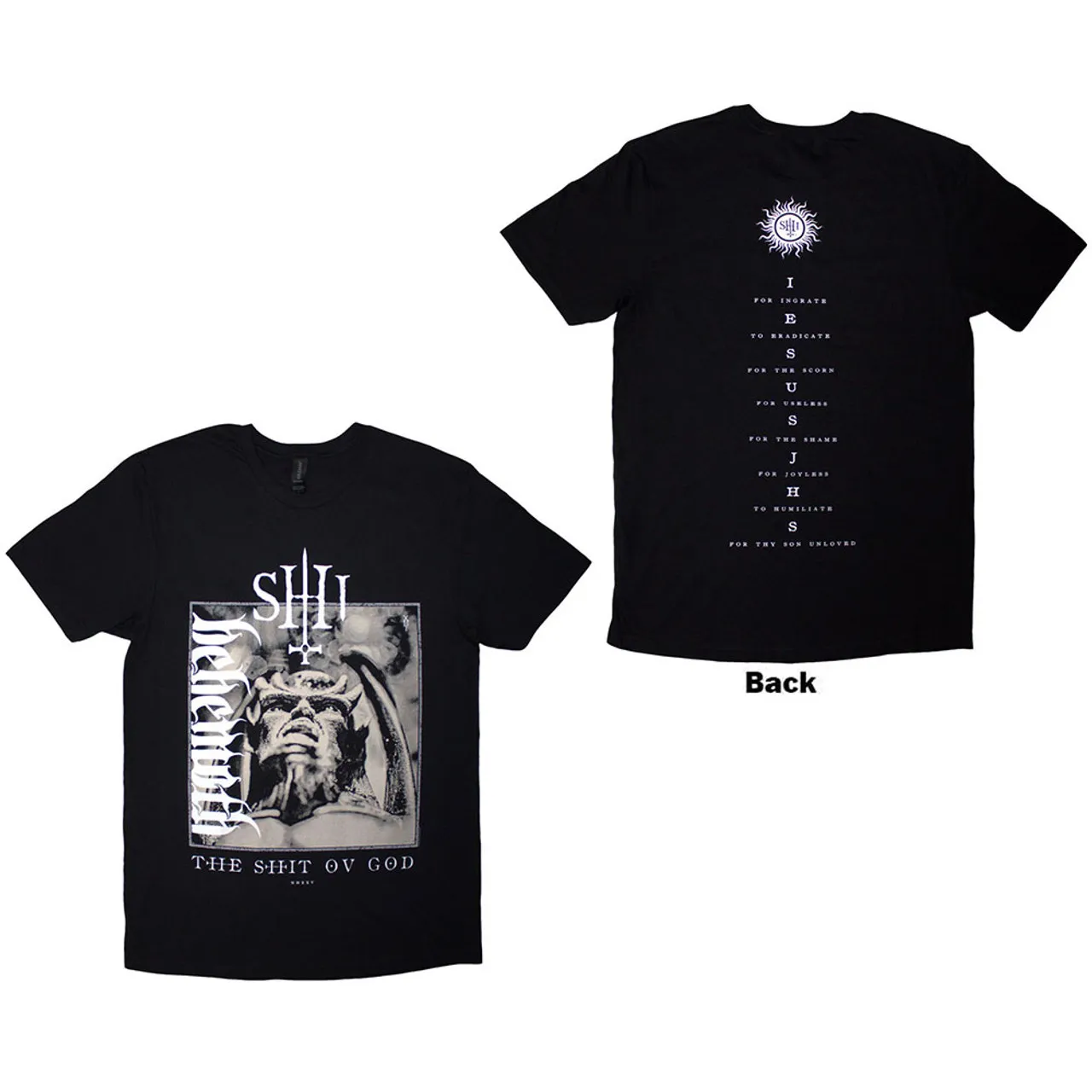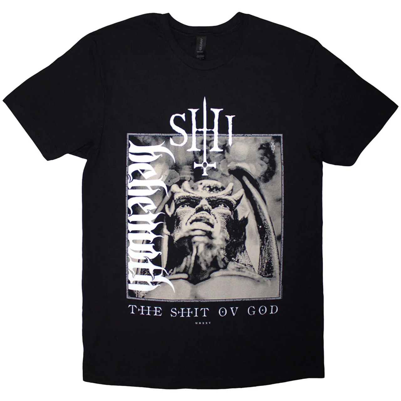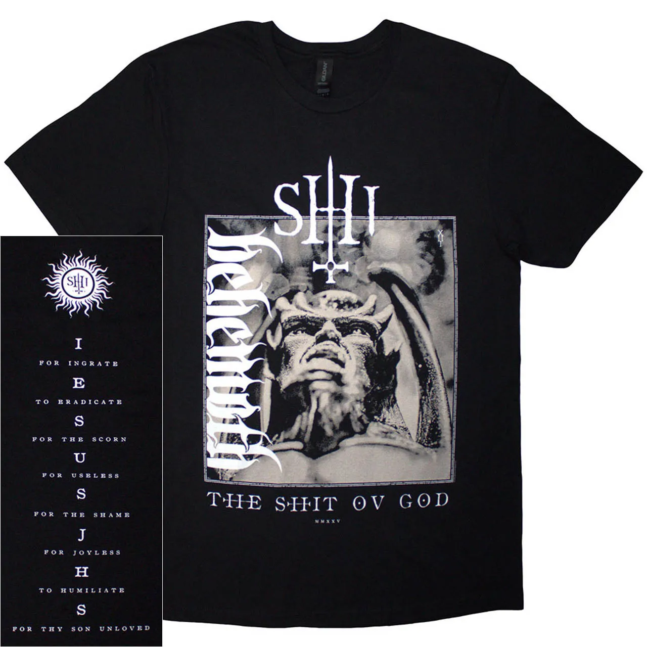 Show your devotion to extreme metal with the Behemoth The Shit Ov God Vertical Logo Album cover Shirt. Featuring the band’s unmistakable logo in vertical and artwork from thier thirteenth studio album The Shit Ov God. This shirt captures Behemoth’s raw power and dark visual identity. Officially licensed, this commanding design represents the uncompromising force of blackened death metal. Essential for fans who embrace Behemoth’s unholy artistry both on and off the stage.