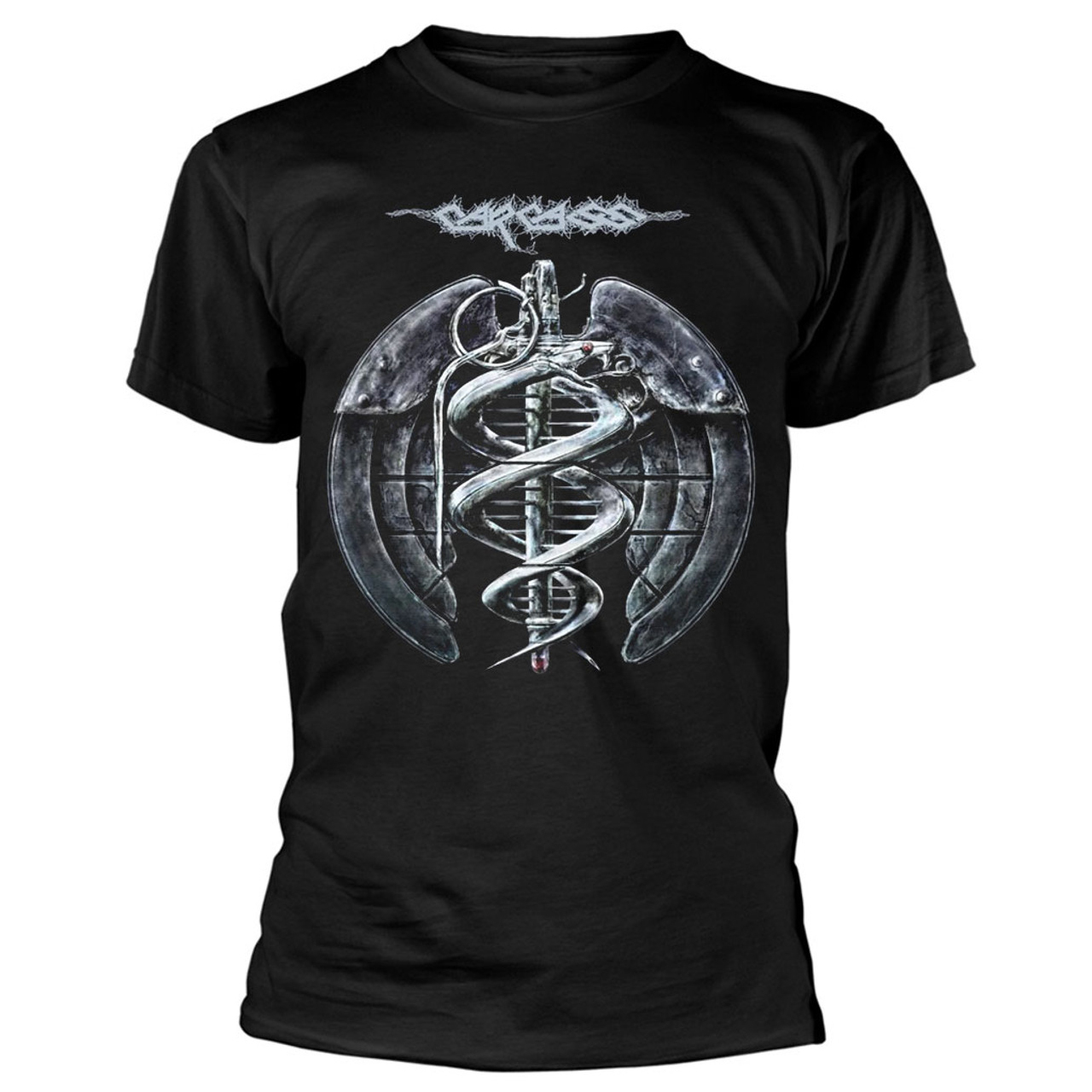 Officially licensed printed on a black cotton shirt, the Medical Grenade artwork delivers everything Carcass is known for - grotesque detail, sharp visual impact, and uncompromising underground style. The bold front print stands out with the same clinical, chaotic energy that helped make Carcass pioneers of grindcore, goregrind, and technical death metal.