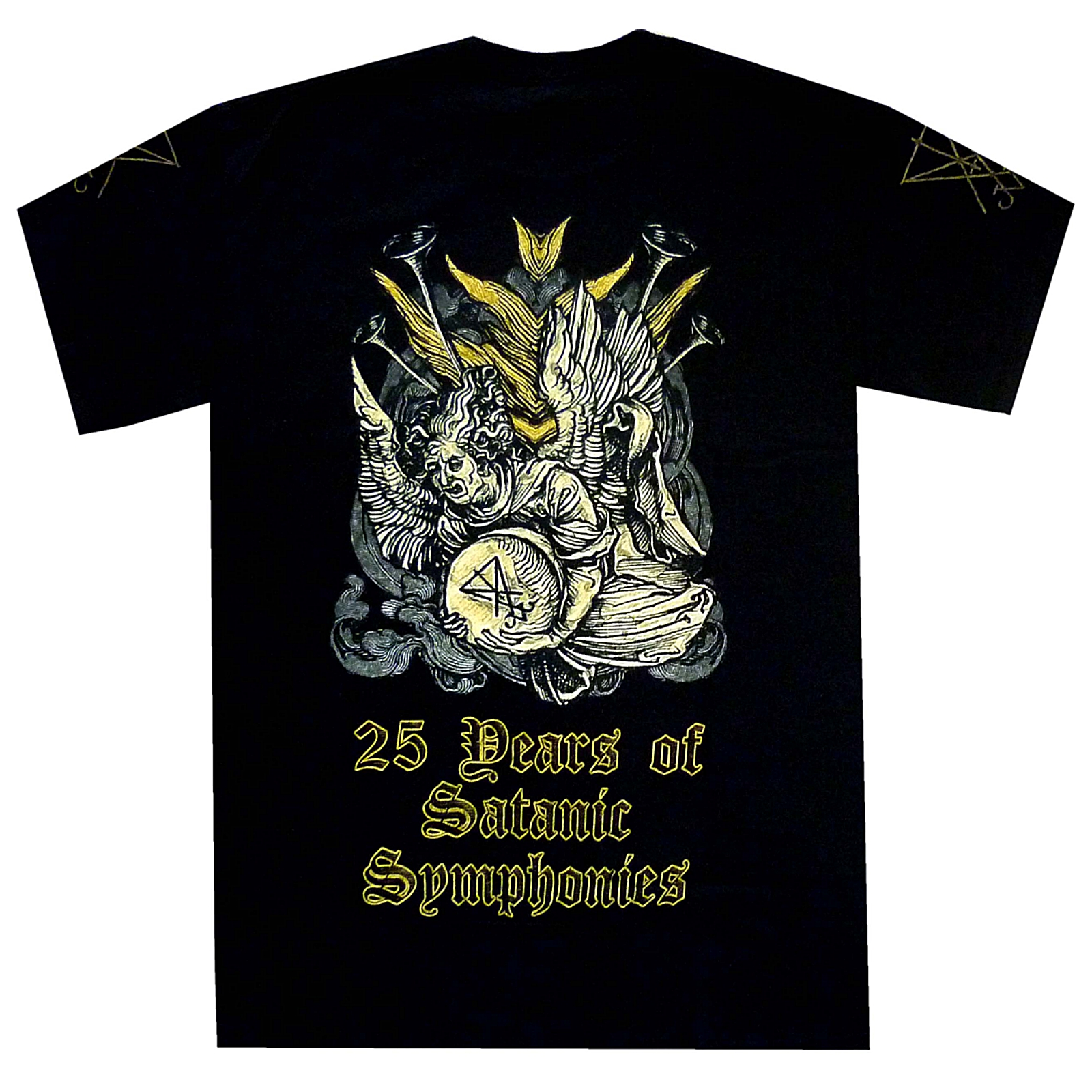 Official shirt from Swedish Black Metal metal band Dark Funeral featuring 25 Years of Satanic Symphonies design.