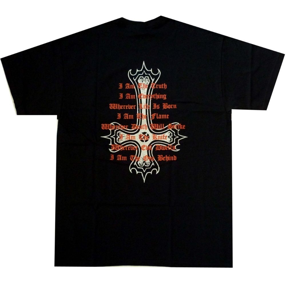 Official t-shirt from Swedish black metal band Dark Funeral featuring I Am The Truth design on front and back.