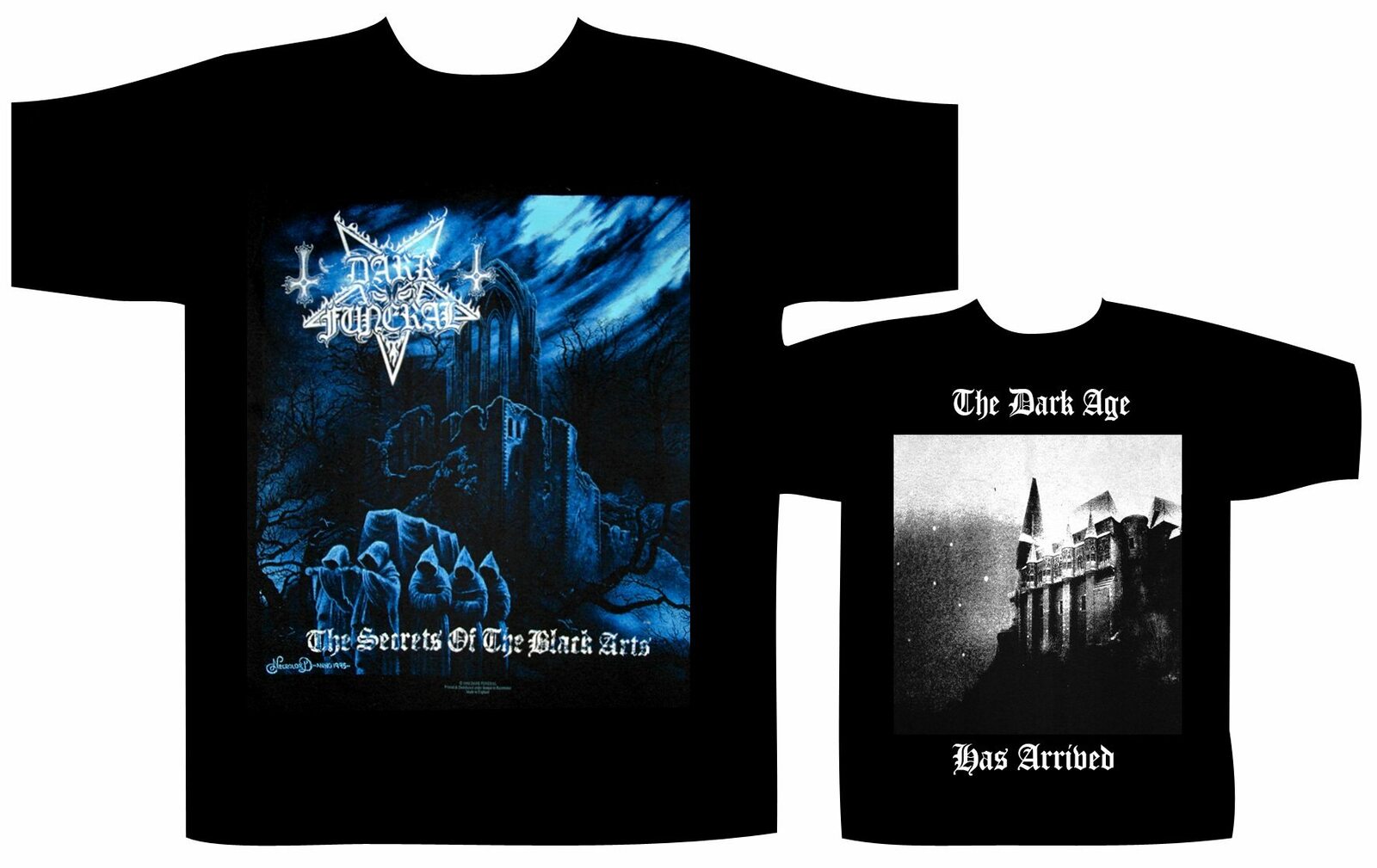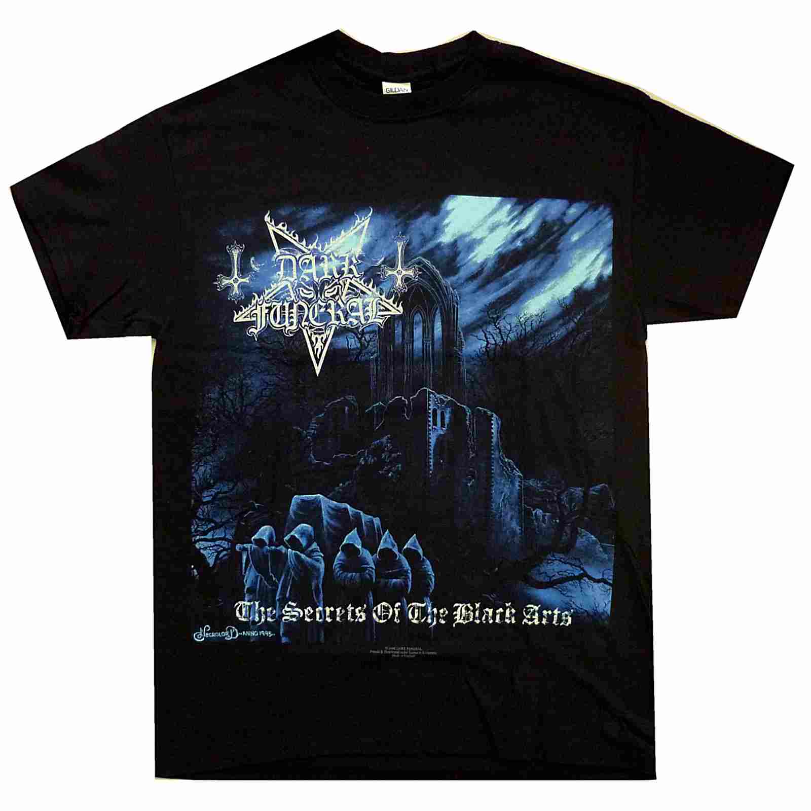 Official shirt from Swedish black metal pioneers Dark Funeral featuring the classic artwork from their legendary debut album The Secrets of the Black Arts.