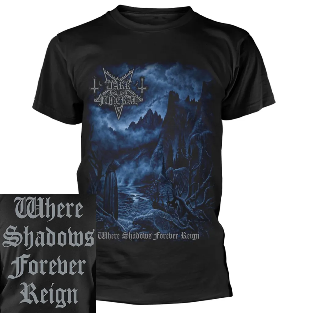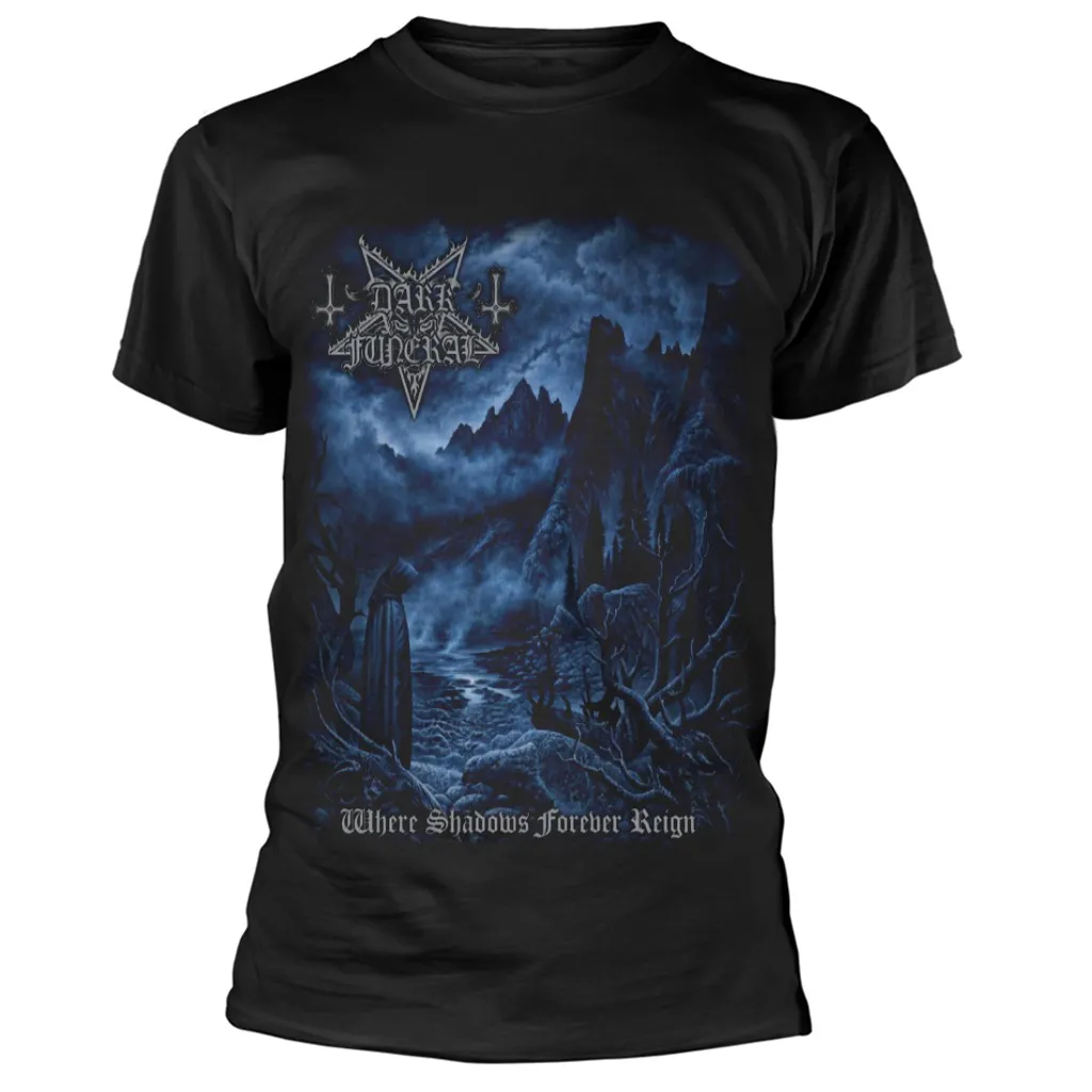 Official Dark Funeral Where Shadows Forever Reign T-Shirt is a premium piece of officially licensed merchandise representing a defining modern-era release from one of black metal’s most dominant bands. Featuring artwork from Where Shadows Forever Reign on the front and the album title emblazoned on the back, this design captures the refined intensity and visual identity of Dark Funeral.