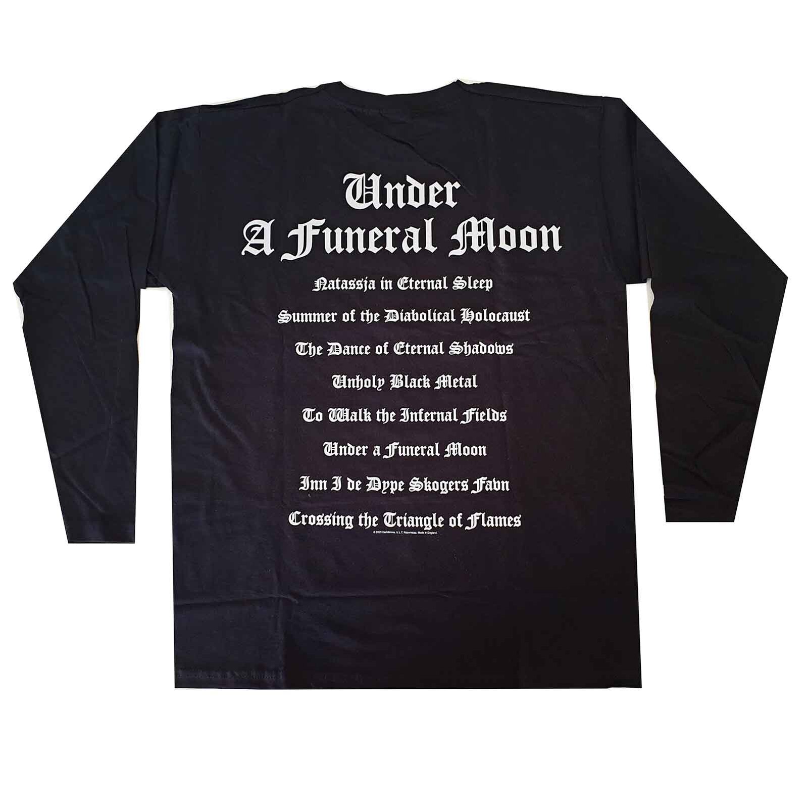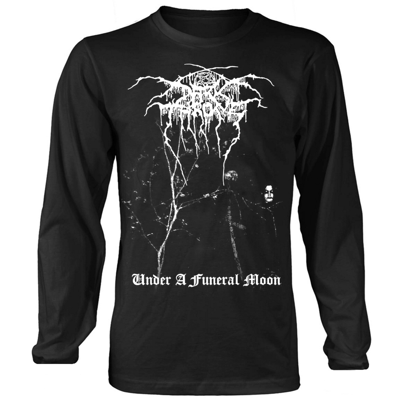 Official long sleeve shirt from Norwegian black metal band Darkthrone featuring Under A Funeral Moon / Album design.