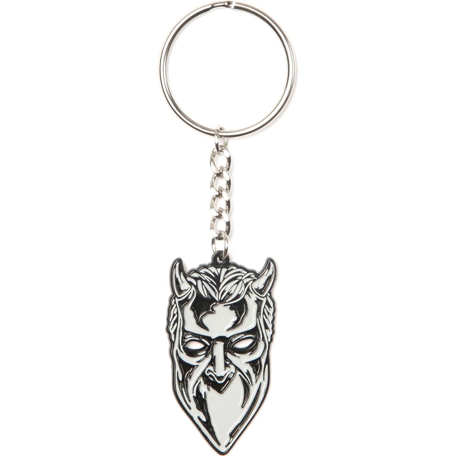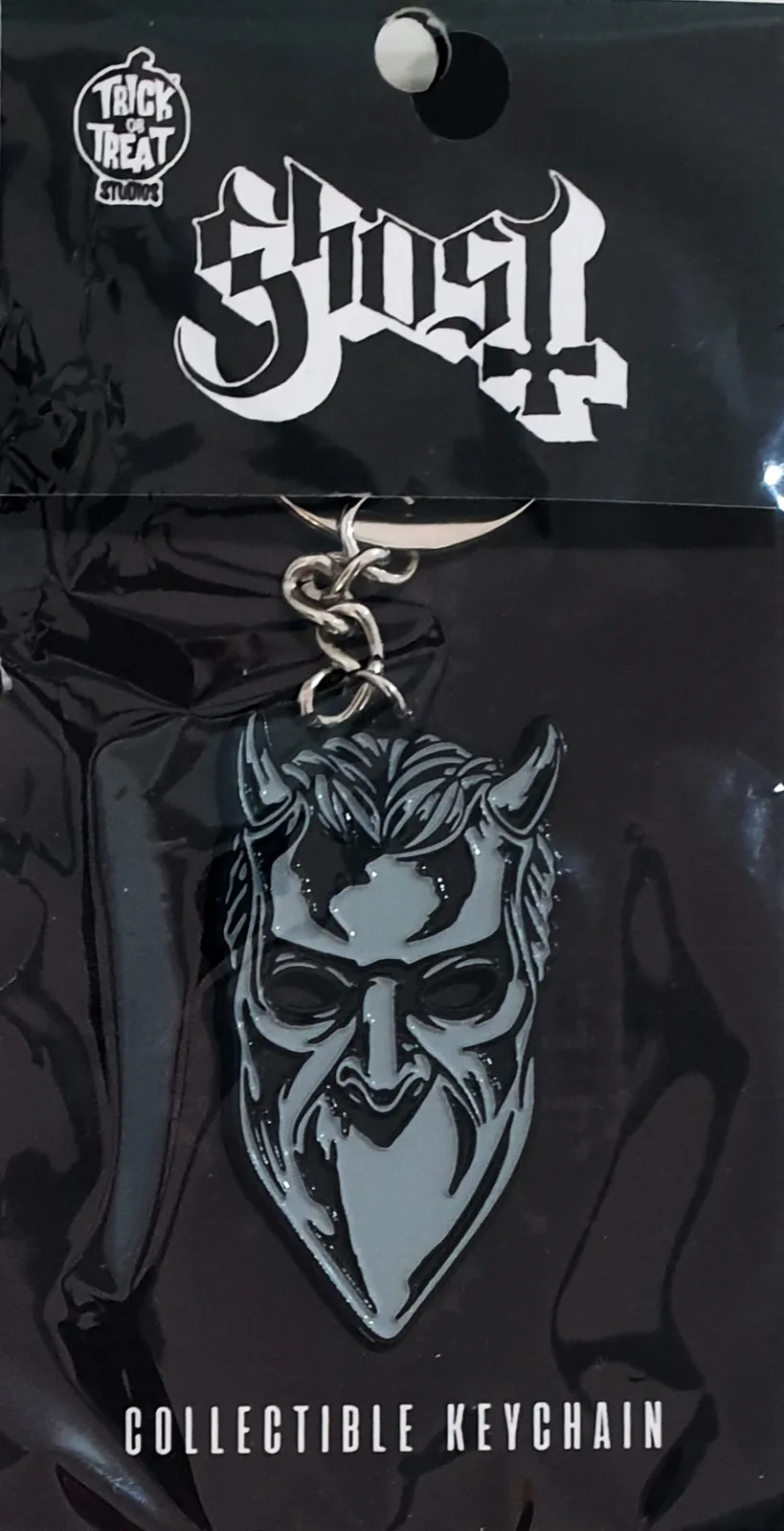 Keep your keys rockin with this officially licensed Ghost band collectible enamelled metal keychain. Featuring the Nameless Ghoul design from the Swedish metal band. Size measures 5cm 2 inch wide x 3cm 1 inch high, an ideal gift for Ghost fans, metal music collectors, and rock merchandise enthusiasts