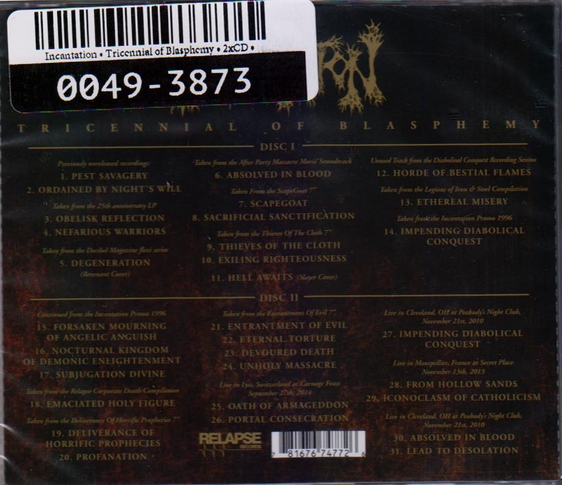 Incantation - Tricennial Of Blasphemy 2CD (Jewel Case, 2022, Relapse Records)