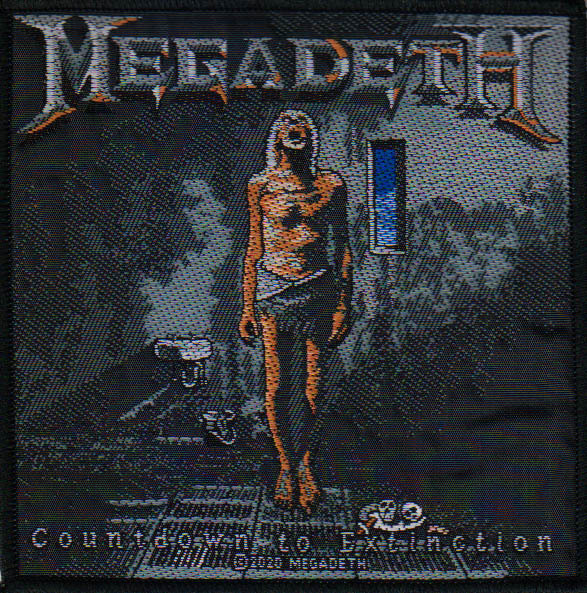 Official sew on embroidered patch from American metal band Megadeth featuring artwork design from their fifth studio album Countdown to Extinction.