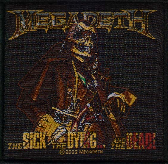 Official sew-on embroidered patch from American thrash metal band Megadeth featuring design from their sixteenth studio album The Sick, the Dying... and the Dead!.