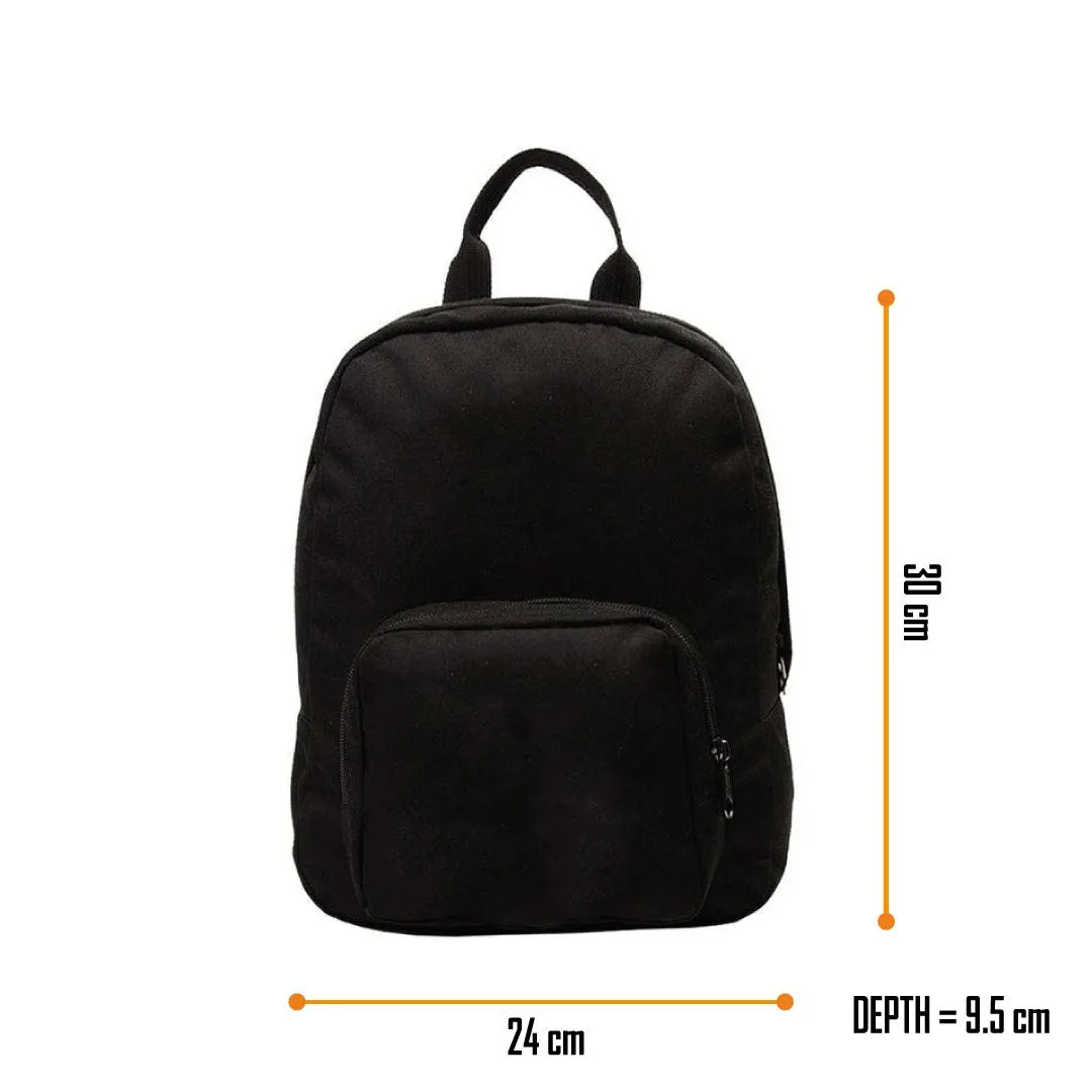 Features include a smaller version of the classic Rocksax backpack, a spacious main compartment, zip-fastening front pocket, adjustable padded shoulder straps, back panel for added comfort, height 30cm, width 24cm, depth 9.5cm, and durable 900D polyester with 210D polyester lining.