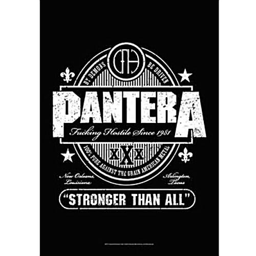 Official Pantera fabric poster flag featuring the classic Beer Label Stronger Than All design. Show your loyalty to one of the most influential metal bands of all time with this officially licensed Pantera wall flag. Made from durable washable fabric, this vibrant banner is perfect for hanging on walls or ceilings in your home, music room or jam space.