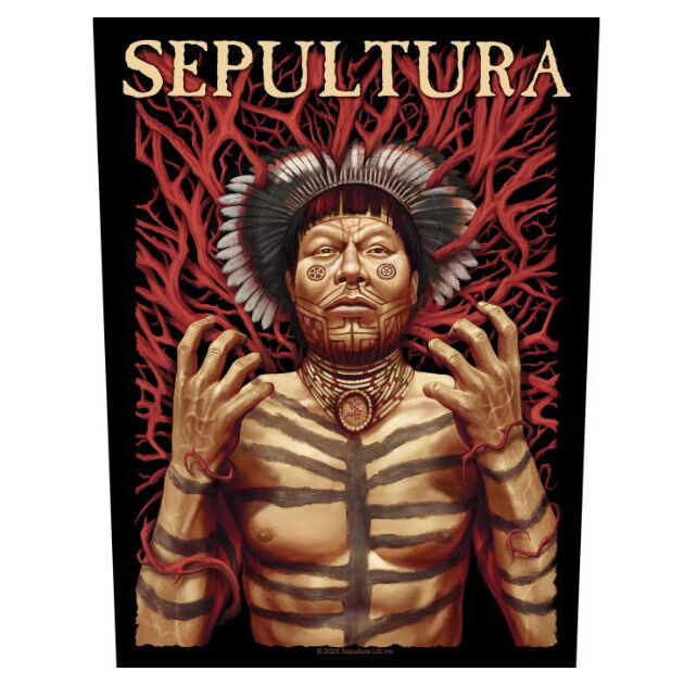 Official sew-on printed back patch from Brazilian heavy metal band Sepultura featuring Roots design.