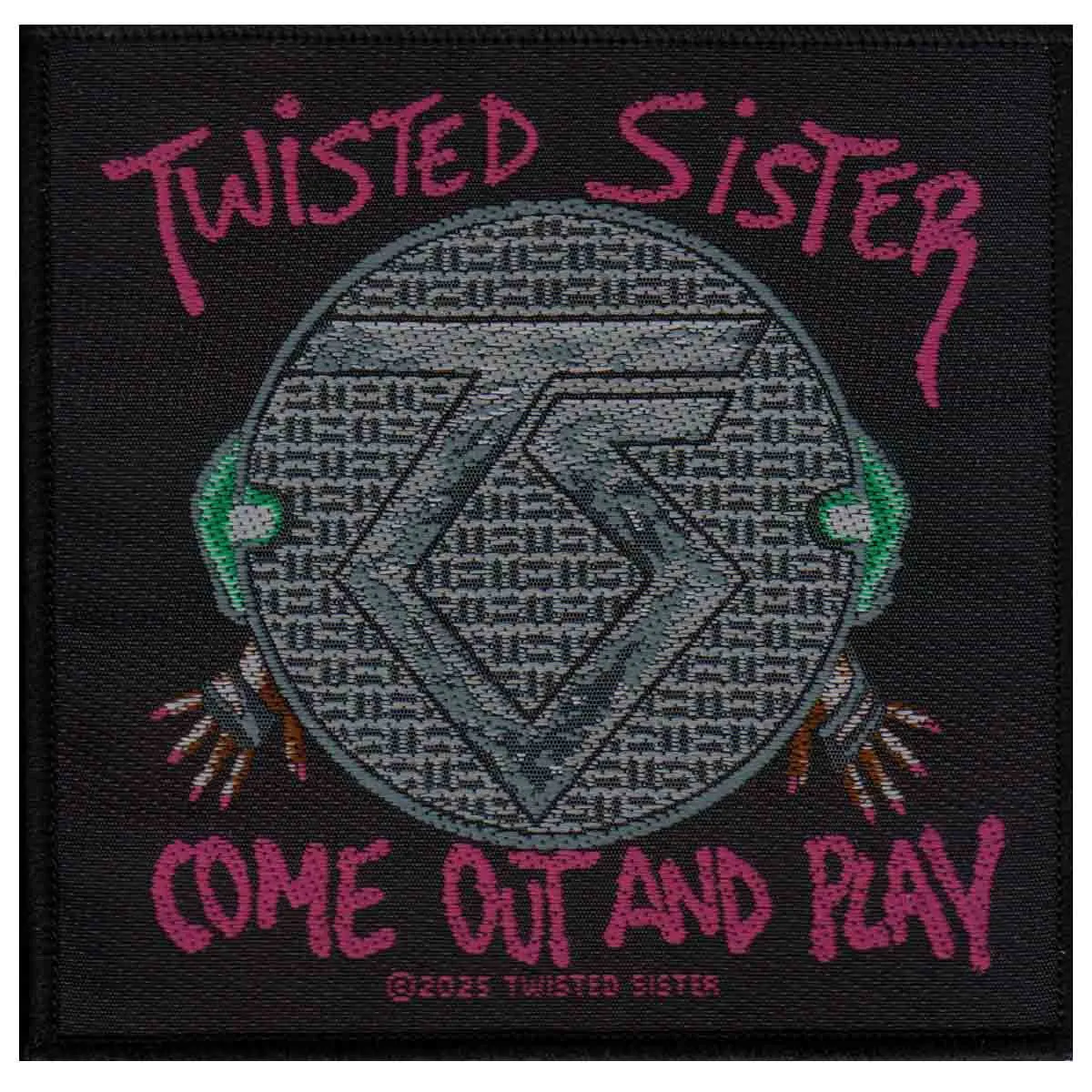 Official sew-on embroidered patch from the American heavy metal band Twisted Sister featuring Come Out and Play design.