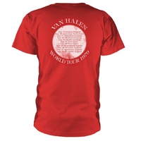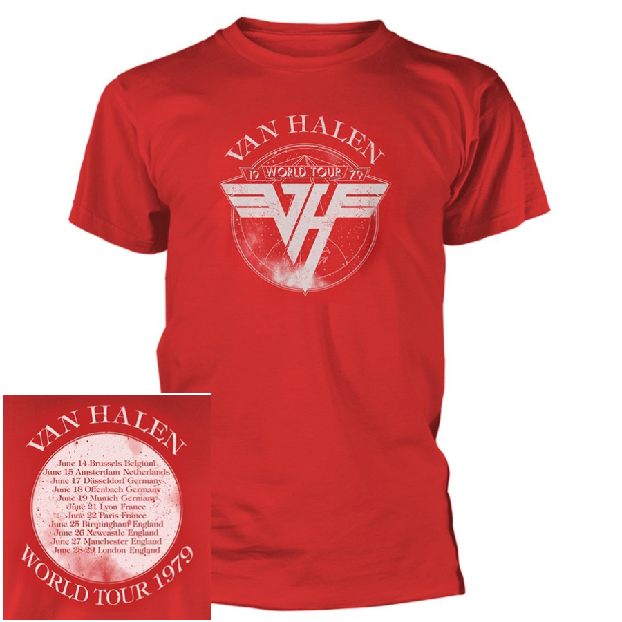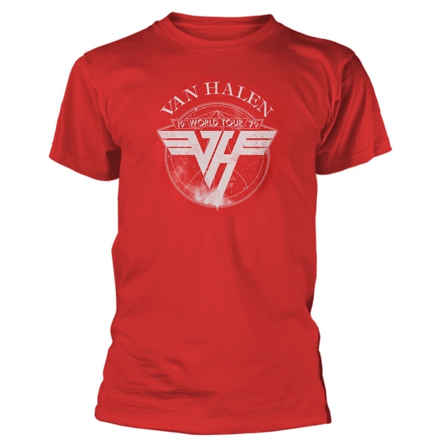 Official shirt from American hard rock band Van Halen featuring '79 1979 World Tour Red design.